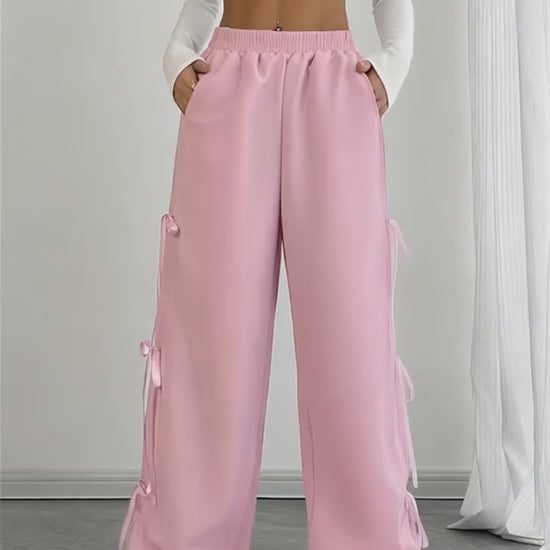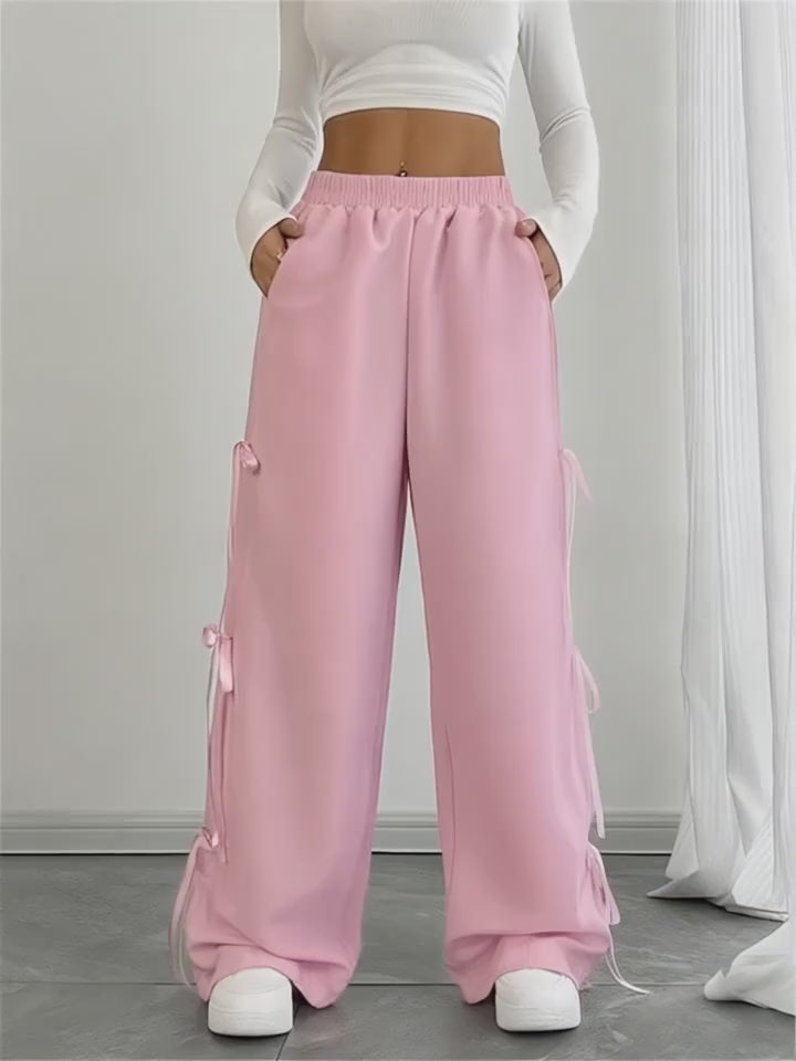 Pink Wide-Leg Joggers with Side Bows: Add a playful twist to your loungewear with these ultra-soft, relaxed-fit joggers, accented with cute side bow ties for a feminine touch.